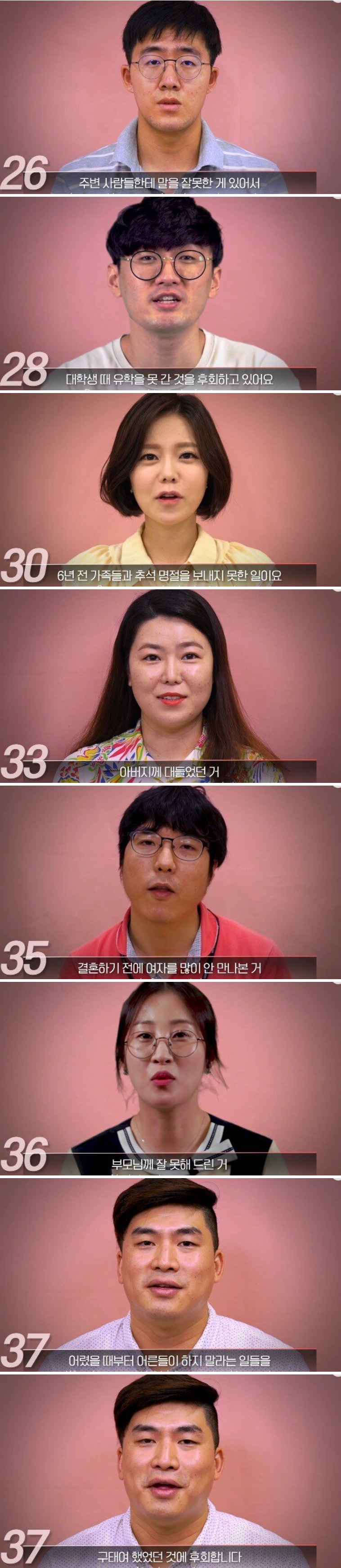 나이별로 후회되는 일이 아련하네요.