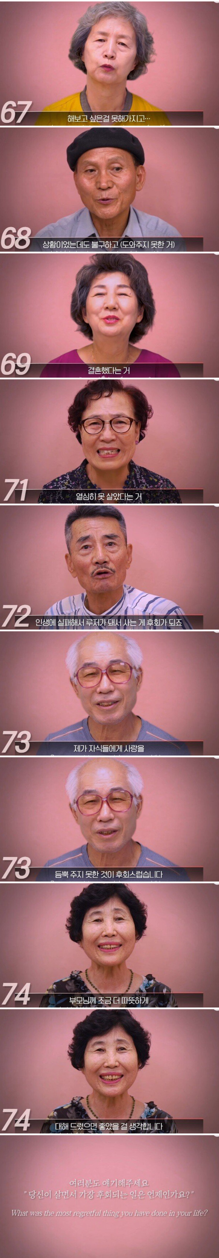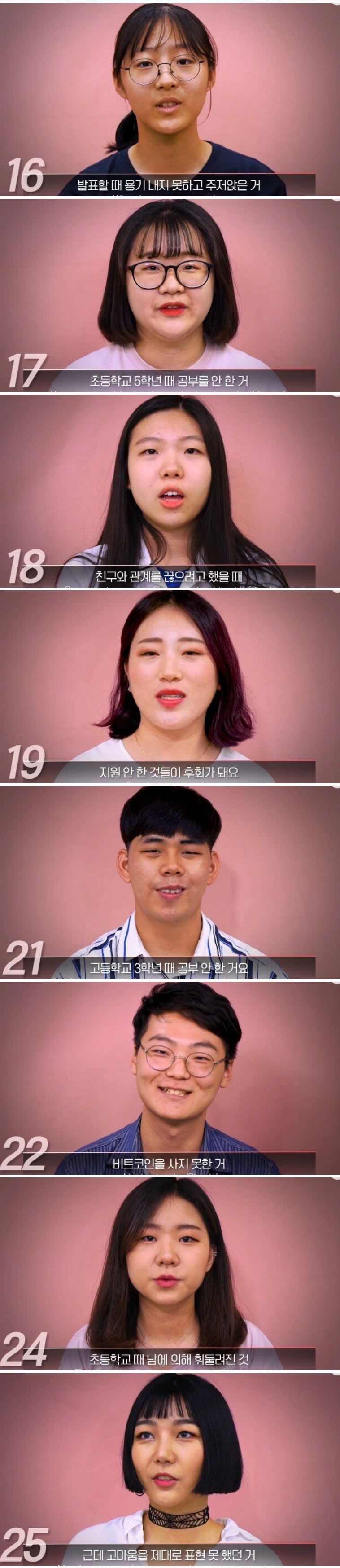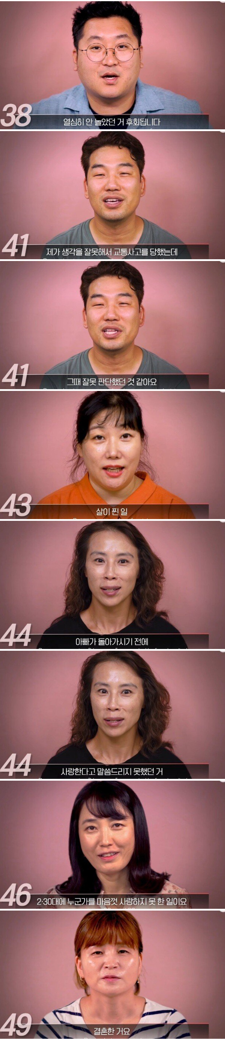 나이별로 후회되는 일이 아련하네요.
