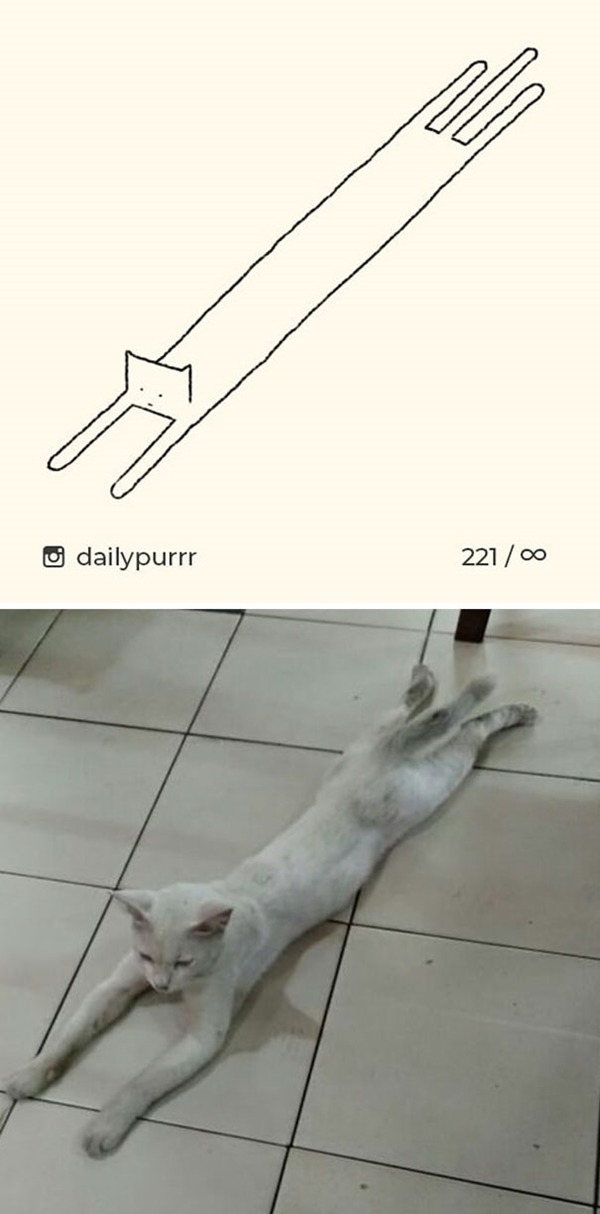 라트비아에 살고 있는 아이나르(Ainars)는 매우 단순한 고양이 그림으로 인스타그램에서 화제가 되고 있다. 두 마리의 유기묘 니카(Nika)와 쿠쟈(Kuzya)를 입양해서 기르고 있는 아이나르는 고양이 특유의 액체같이 유연한 몸과 특이한 포즈에서 영감을 받아 그림을 그리기 시작했다. 단순하지만 특징을 제대로 캐치한 그의 고양이 그림은 원본 사진과 비교했을 때 더욱 빛이 난다. 최근엔 자신의 고양이도 그려달라며 많은 사람들이 사진을 보내오고 있다고 하네요.