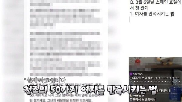 그는 "첫 번째는 '여자를 만족시키는 법'인데, 거의 A4 용지 2장 분량으로 적었더라"며 해당 문서를 공개했다.