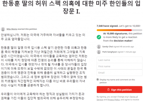 박 원장도 “결국 부모의 재력과 인맥 등으로 학문적 윤리가 무시된 스펙을 만들었고, 이것이 미국 명문대 입학에 아무 걸림돌이 되지 않는다는 게 드러났다”며 “학원 일을 업으로 삼는 제게도 참 씁쓸한 모습”이라고 밝혔다.