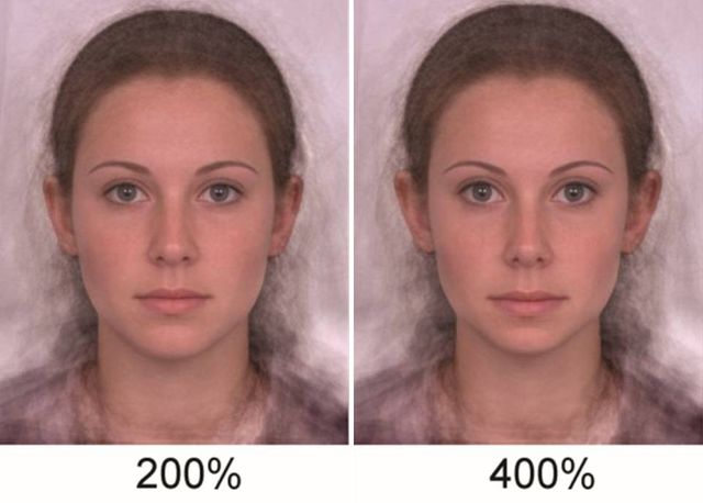 이때 0%와 100%의 차이를 2배로 강조해서 합성한 얼굴(=200%)과