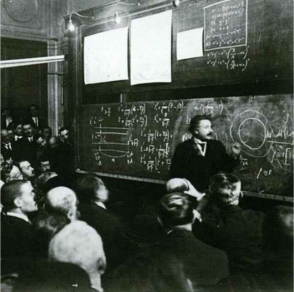 1922년, 상대성 이론을 강의 중인 알버트 아인슈타인