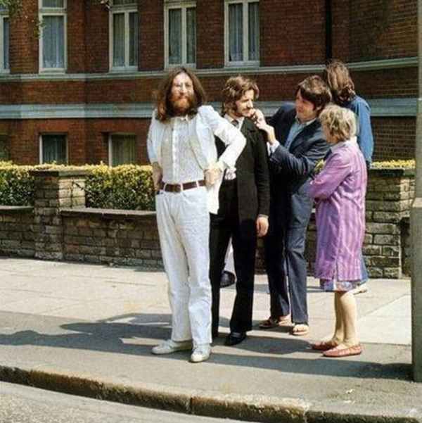 1969년, 애비 로드 걷는 씬을 연습 중인 비틀즈