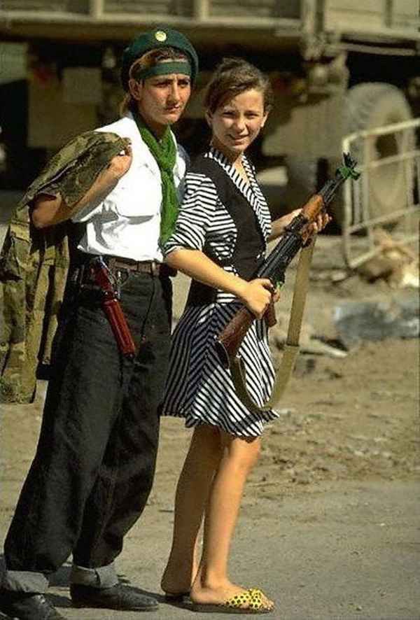 1990년대 러시아-체첸 전쟁 당시 총을 든 소녀들