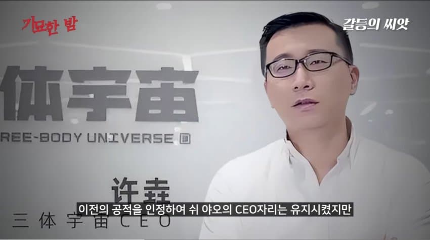 더군다나 삼체의 드라마제작을 넷플릭스로 넘기며 해당 프로젝트의 프로듀서로 쉬야오는 포함되지 않았음. 그냥 CEO 자리만 차지하고 연봉도 4분의1밖이 안되는 9억원만 받고 있게된거임.