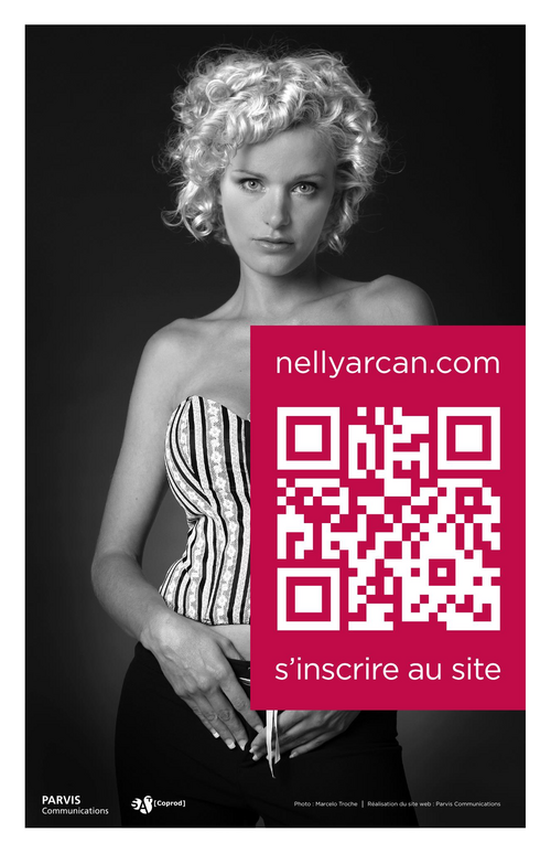 넬리 아르캉의 사진과 그의 공식 추모 홈페이지   QR 코드