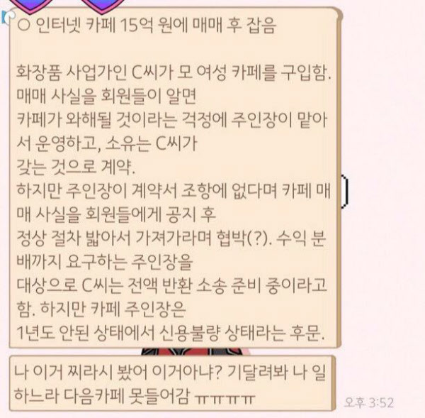 이 카페는 논란과 구설수가 사실상 왠만한 남초카페보다도 많은 곳이다. 인증회원은 사귀지도 결혼도 안된다는 농담이 있을 정도로 명성이 대단하다. 혼돈의 카오스를 양성하는 여초커뮤니티