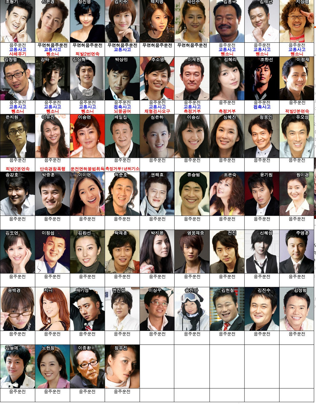 음주운전 연예인 명단2 (위 사진과 중복 있음)
