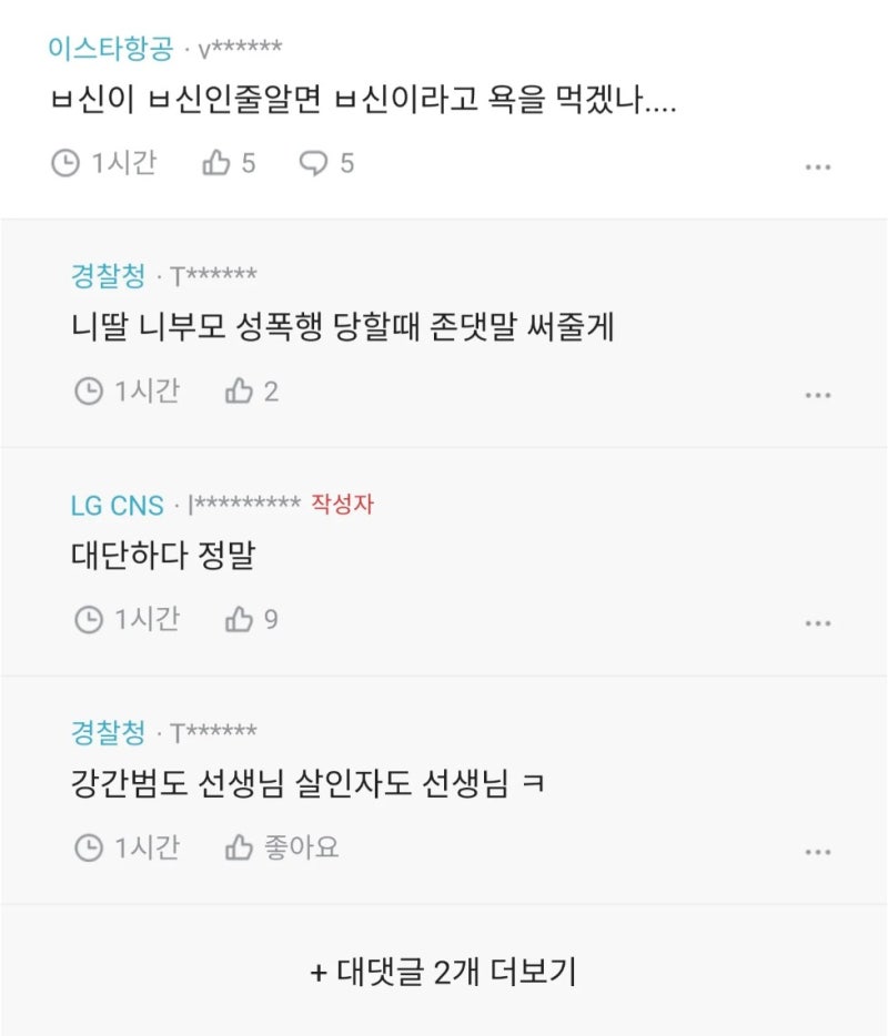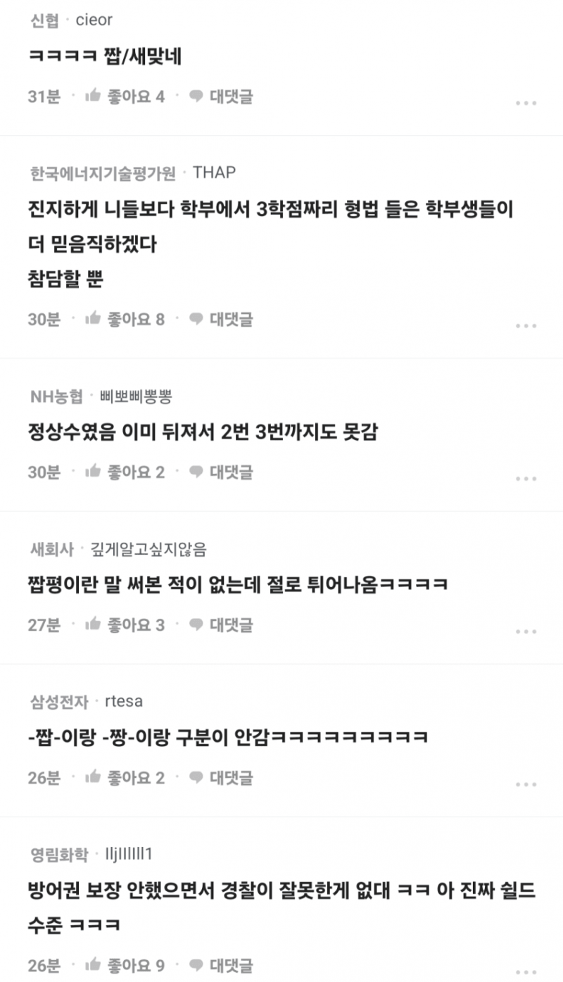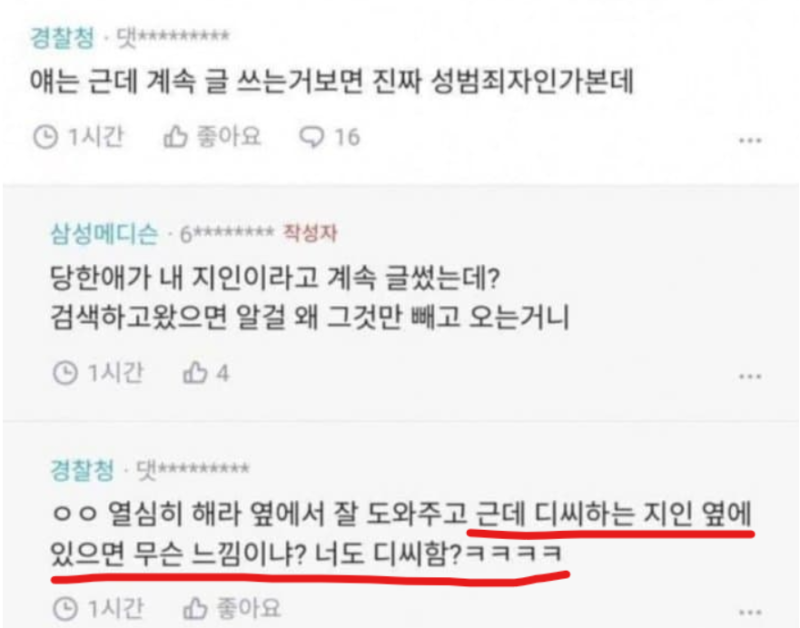 아래는 블라인드 커뮤니티에 익명 경찰들이 쓴 글들입니다.