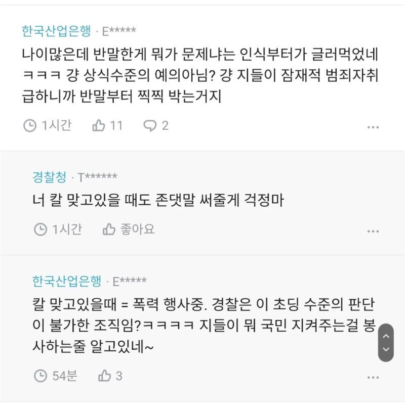 블라인드에서 경찰청의 이름을 달고 많은 경찰들이 댓글을 달고 있었다.