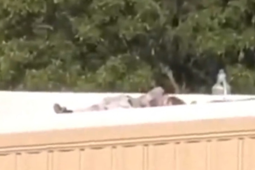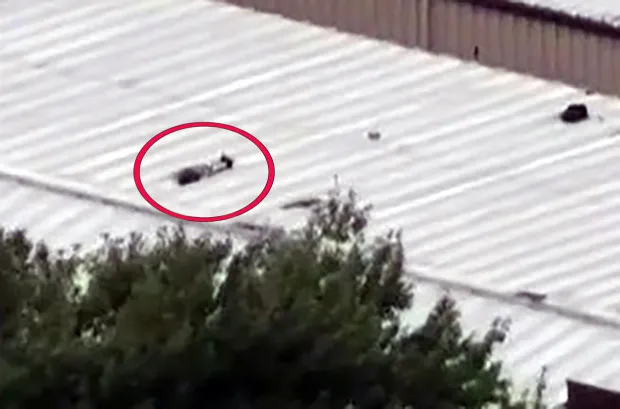 지붕 위에 있던 남성이 숨진것처럼 아무 움직임 없는 모습.