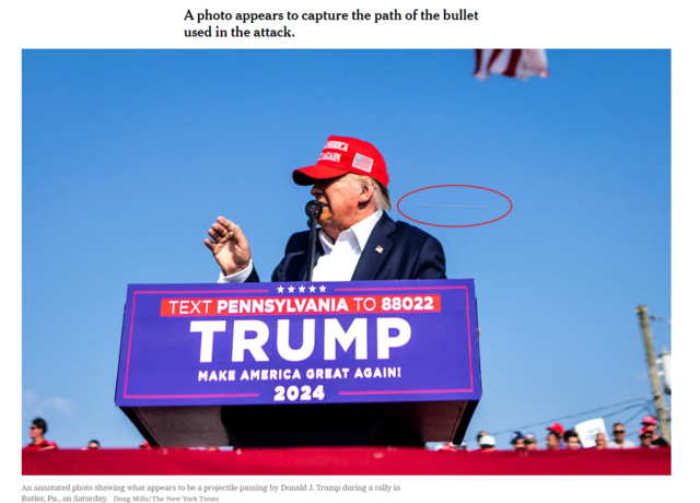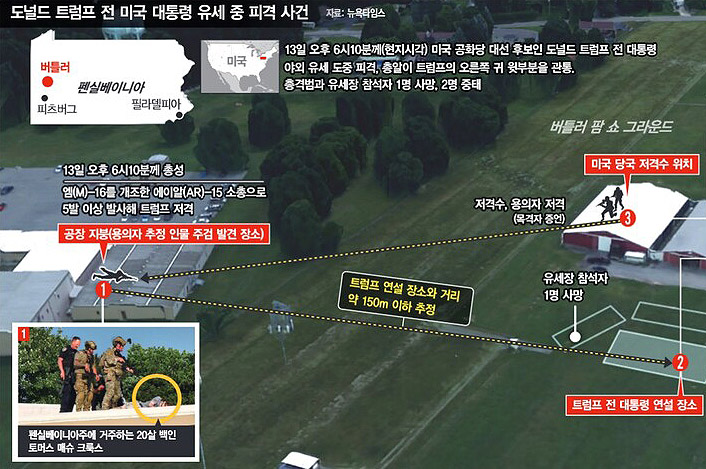 그중 한발이 트럼프의 오른쪽 귓볼을 스친다.