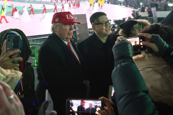 그는 인형을 때리면서도 계속 누군가를 쳐다보고 있다. 그의 시선이 가닿은 곳은 바로 북한 선수단이었다. 북한 선수단은 코앞에서 이런 짓을 벌이는 남성에게 욕설이나 쓴소리도 하지 못했다.