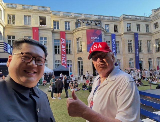 사실 이 남성은 앞서 올림픽 기간 파리에 방문해 김정은 코스프레를 한 채 거리를 활보해 온라인에서 크게 화제를 모았다. 그는 도널드 트럼프 미국 전 대통령 코스프레를 한 남성과 함께 경기를 관람하는가 하면 같이 셀카를 찍어 자신의 인스타그램에 올리기도 했다.