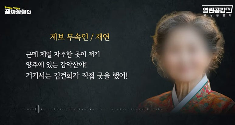 김건희가 자주 직접 굿을 한 양주 감악산을 연린공감tv에서 취재하였다.