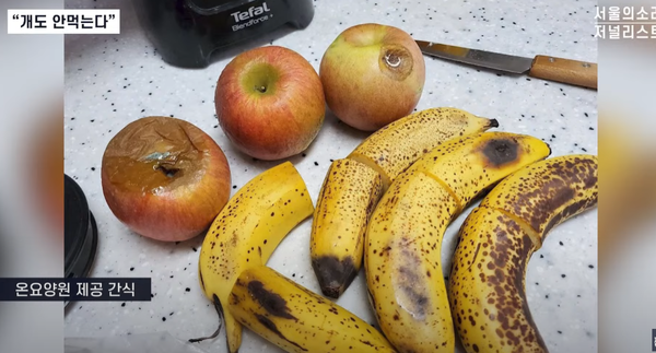 한 층에 거주하는 16명의 어르신들에게 바나나 6~7개를 갈아 만든 주스를 나눠주는 일이 반복됐다. 바나나가 부족할 경우 요구르트와 물을 섞어 희석해 제공했다고 한다. "개도 안 먹을 음식"이라는 직원의 표현은 현실을 단적으로 보여준다.