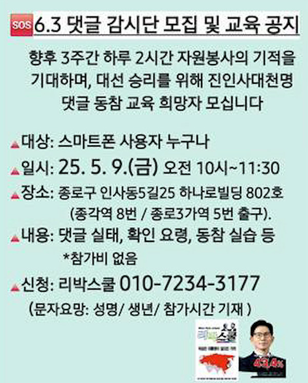 특히 참석자 정 모 씨는 댓글팀 에이스였다. 그는 이재명 후보에 대한 악의적 댓글을 주로 올렸고, 부정선거론을 퍼뜨리는 데도 적극적이었다. 이들은 국민의힘 권성동, 조정훈, 김상훈 의원과 함께 한목소리로 이재명 후보의 '교사의 정치 참여 허용' 공약을 강도 높게 비판했다.